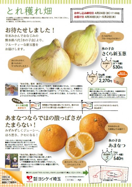 GWチラシの裏面、とれ穫れ畑の玉葱、あまなつもぜひご覧ください。
