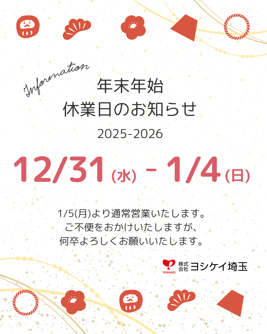 - お知らせ2025.12.29 年末年始休業のお知らせ New!