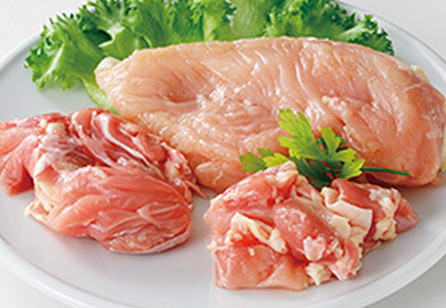 ひなから出荷までの全飼育期間、必要なワクチンを除き、抗生物質など病気を予防するための薬品を一切投与せずに育てられています。抗菌性物質の飼料添加も一切行っていません。飼料の主原料は、遺伝子組み換えでない、収穫後に農薬散布をしていないコーンを使用しており動物性たんぱく質を使用していないため、くせのないジューシーを肉質が特徴です。
