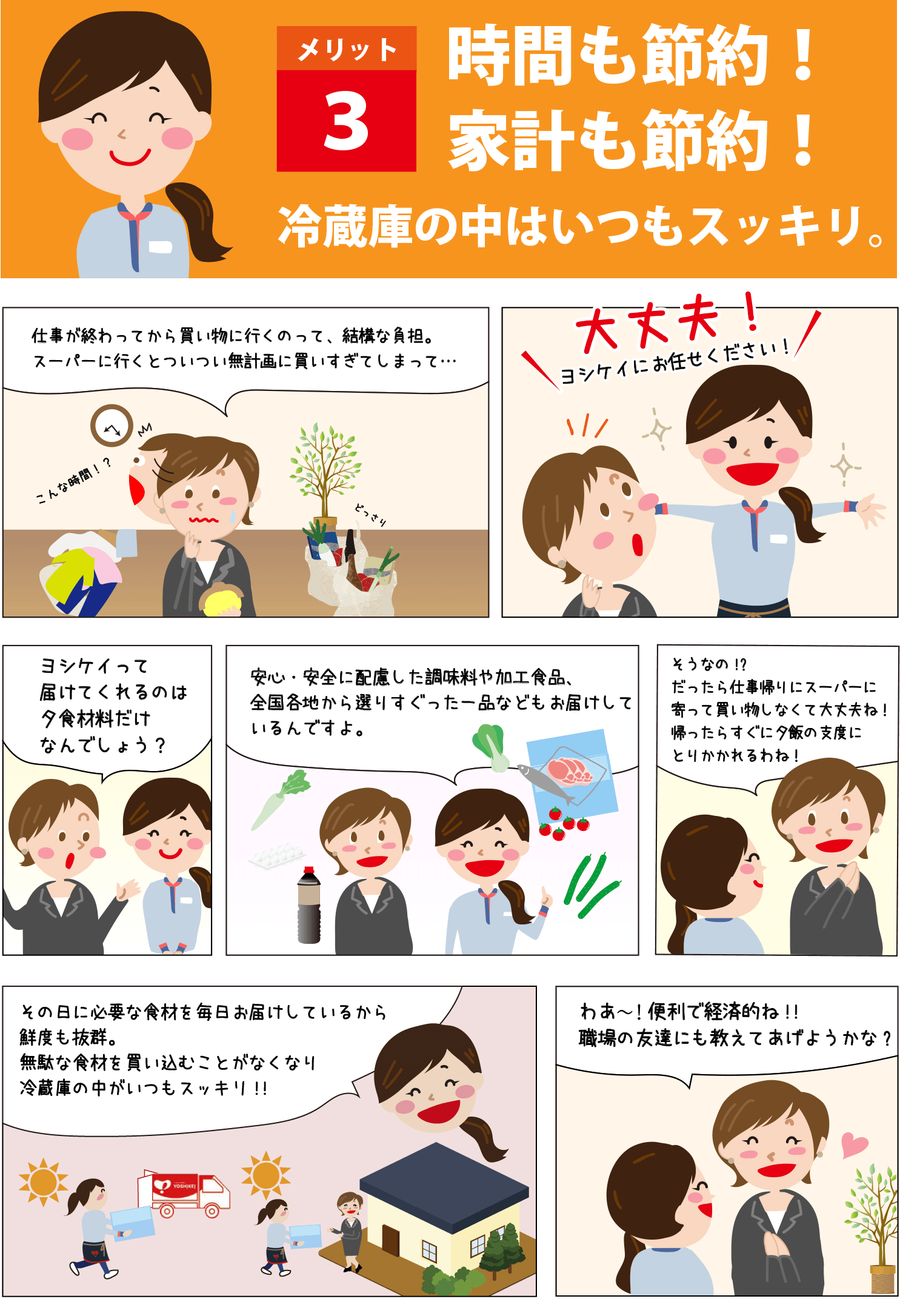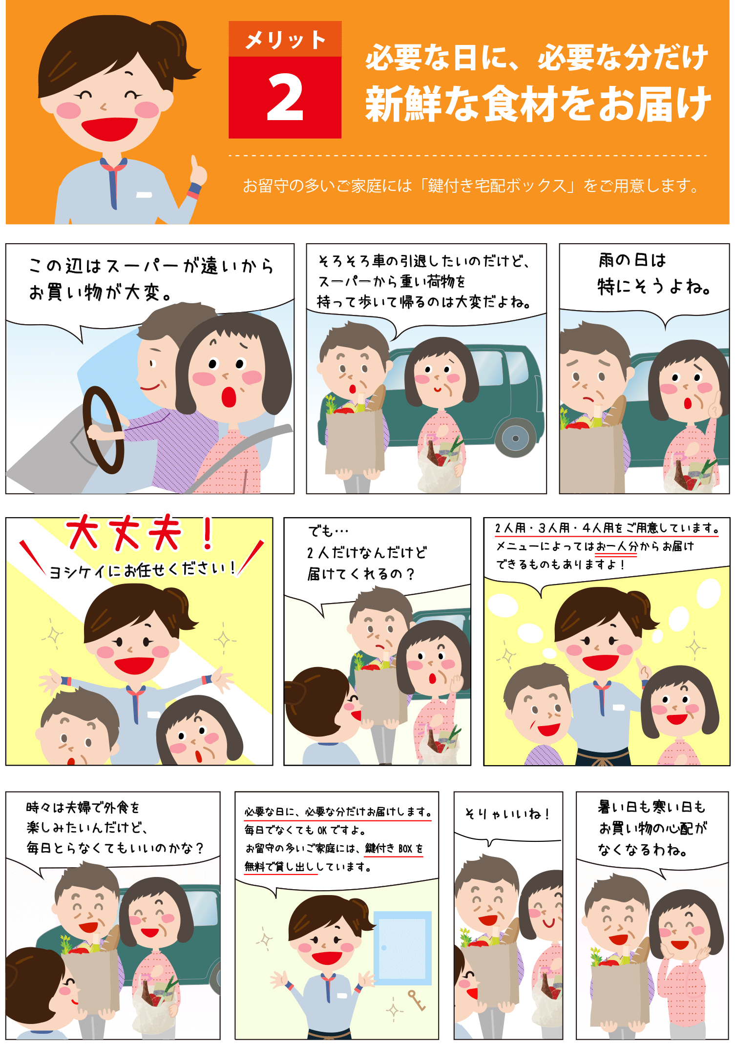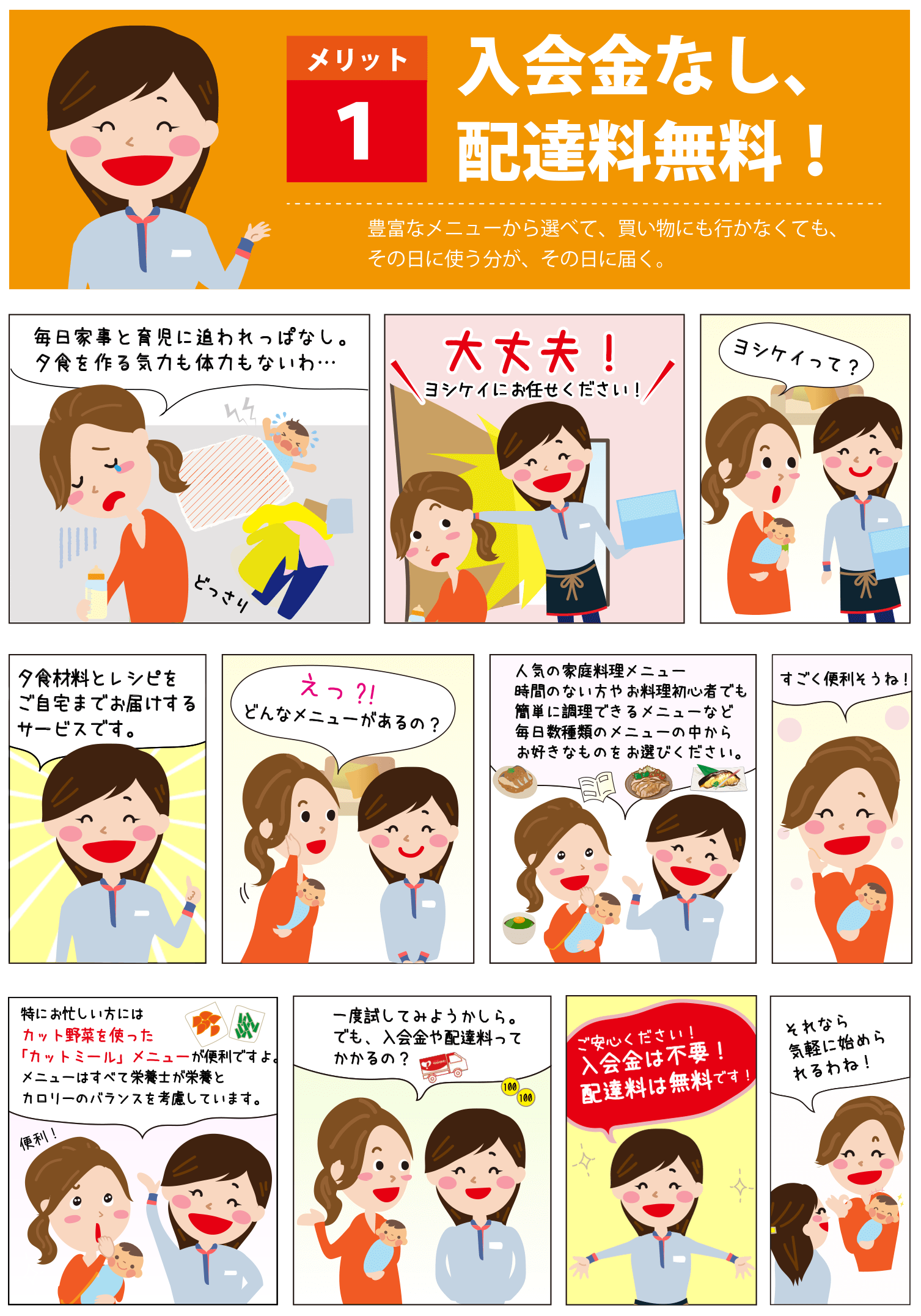 ヨシケイのメリットやシステムを対話形式のマンガで分かりやすくご説明します。
