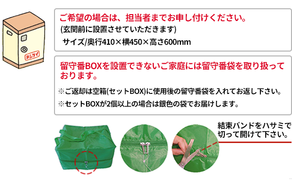 留守がちのご家庭にはカギ付き留守番ボックスを無料で貸し出しています。